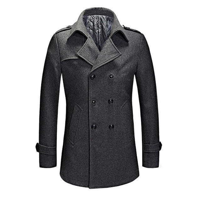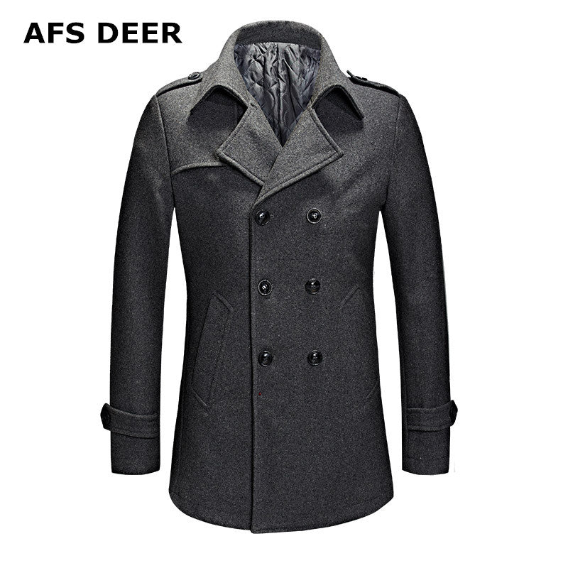2017 Hot Sale Slim Fit Trench Coat Men Tops Autumn Style Double Breasted Trench Coat High Quality Woolen Cloth Fabric Long Mens